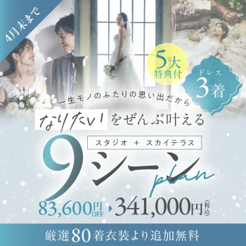 【春満喫!スタジオ+スカイテラス| 9シーンプラン(ドレス3着)!|4月末撮影まで】5大特典プレゼント付き!